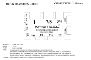 This gauge is useful to spindle turners and woodworker’s indispensable for turning a workpiece to the desired diameter, from 1/8 inch to 1-inch woodworkers will find many uses for the gauge such as measuring the thickness of wood and plywood, checking the size of a tenon and a dado cut or sizing commercial dowels.